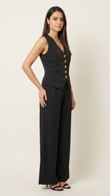 Conjunto chaleco y pantalon largo Negro LD3886
