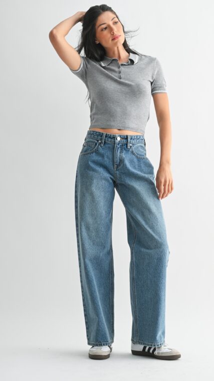 Vestido manga corta mezclilla flores Azul Claro LD3969