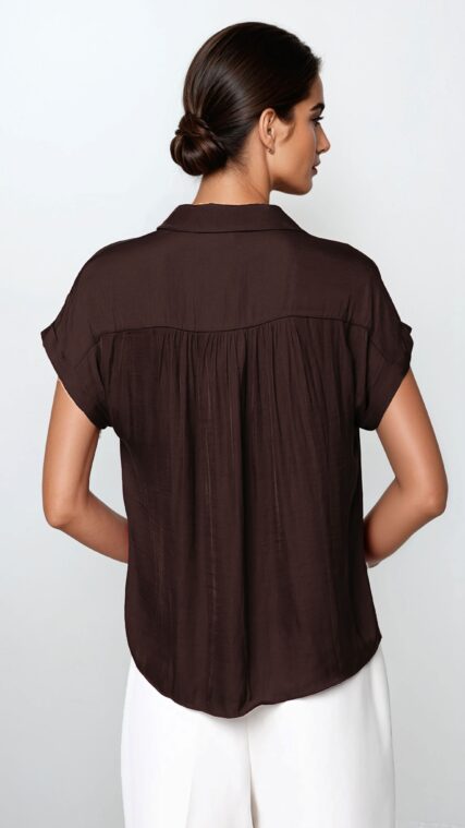 • Blusa botones manga corta Cafe LT10842Nuevo