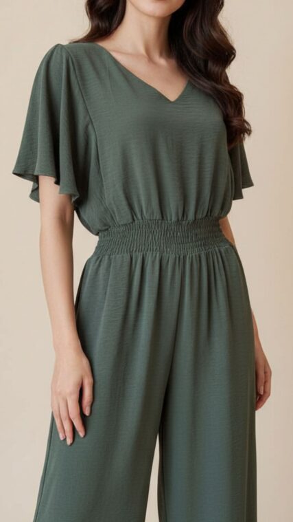 Vestido estampado vuelo en manga Verde Beige LD3907