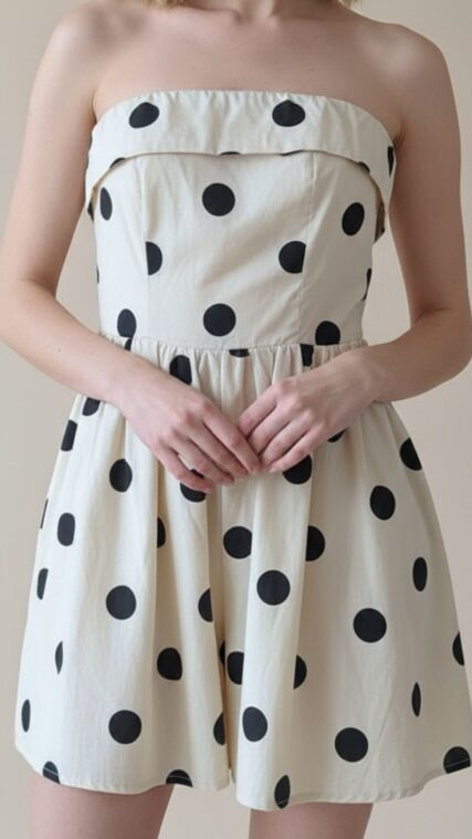 Enterizo corto strapless Bolas Beige Negro LD3745