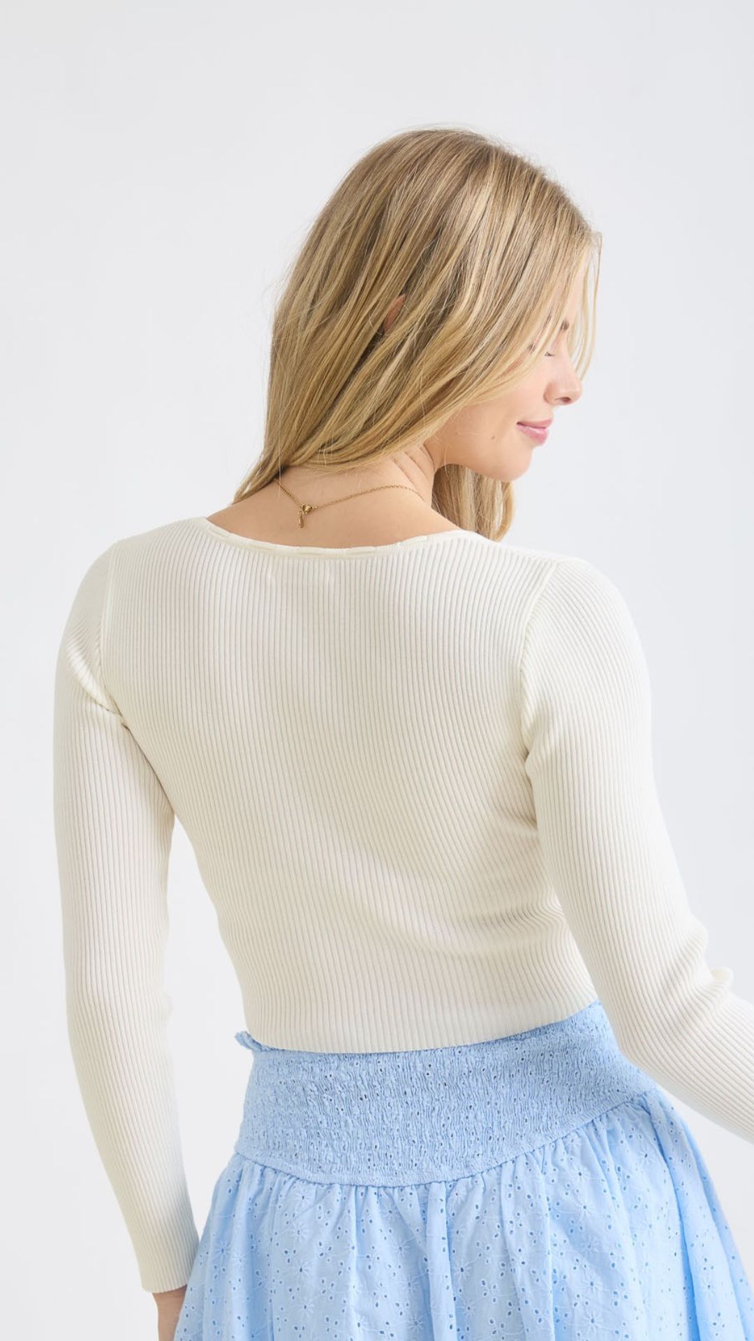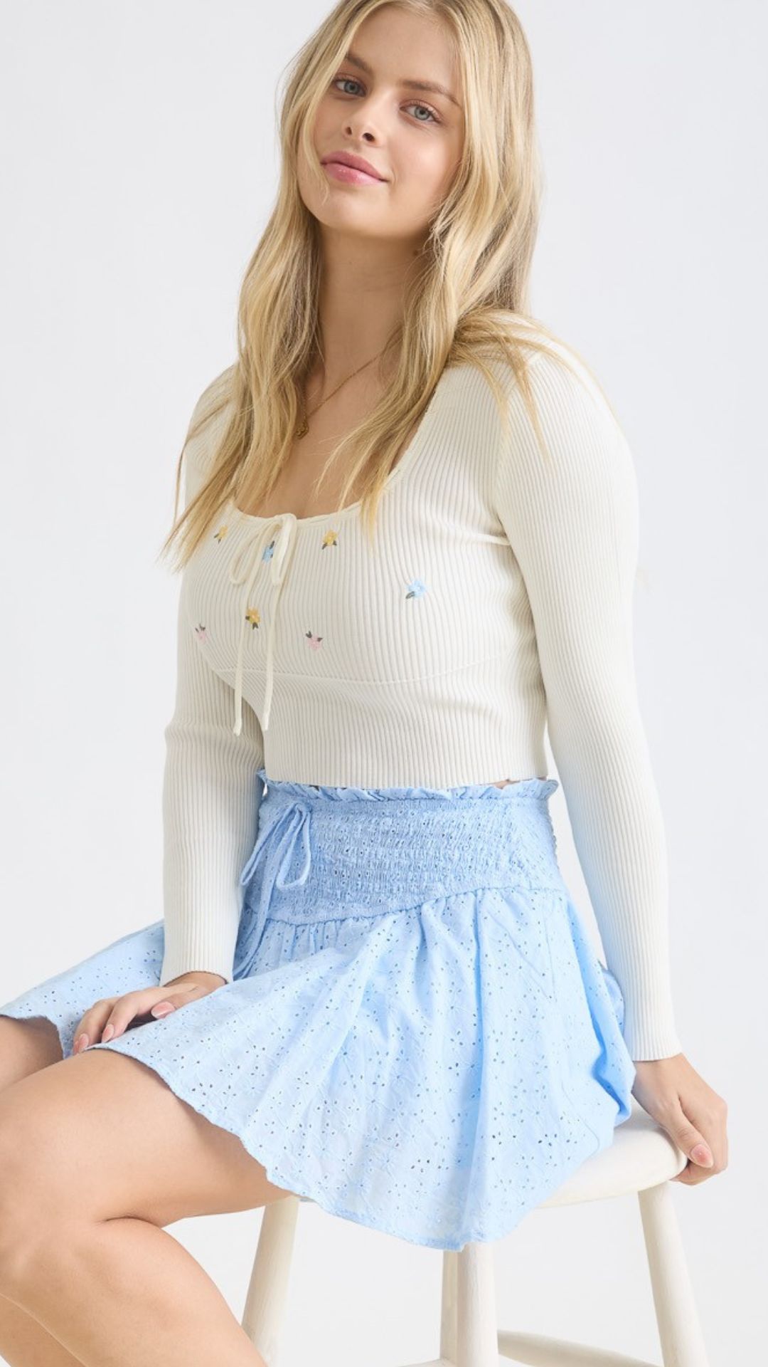 Blusa bordada manga larga acanalada Marfil LT11140
