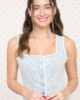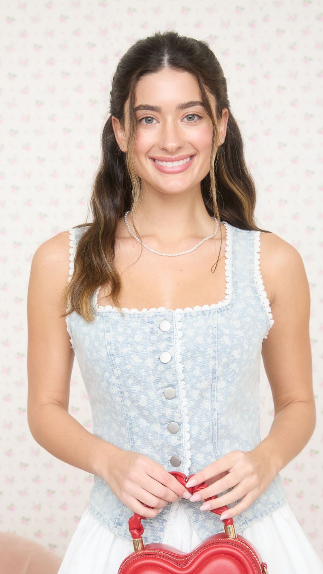 Blusa botones sin manga encaje mezclilla flores Azul claro LT11185