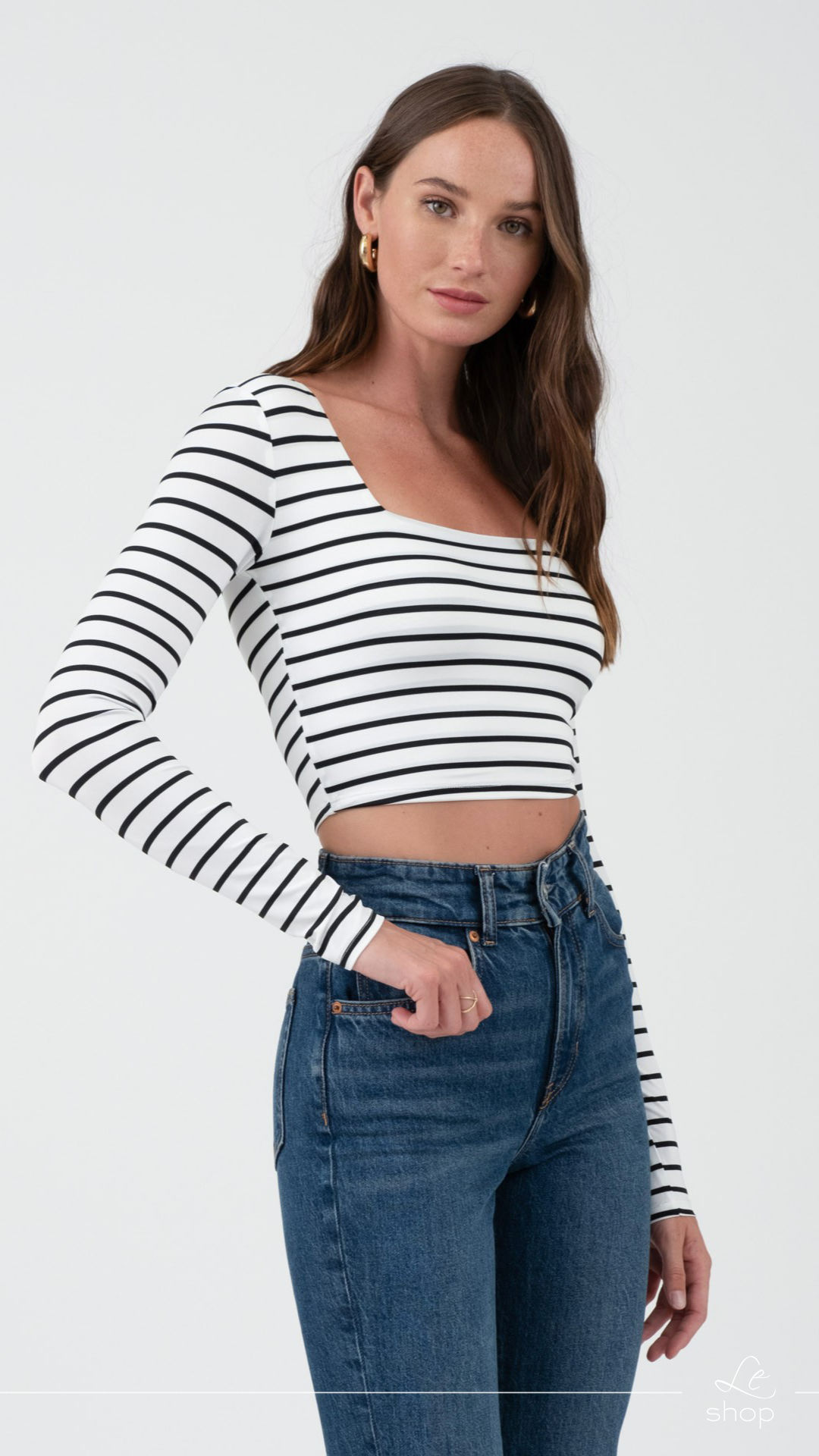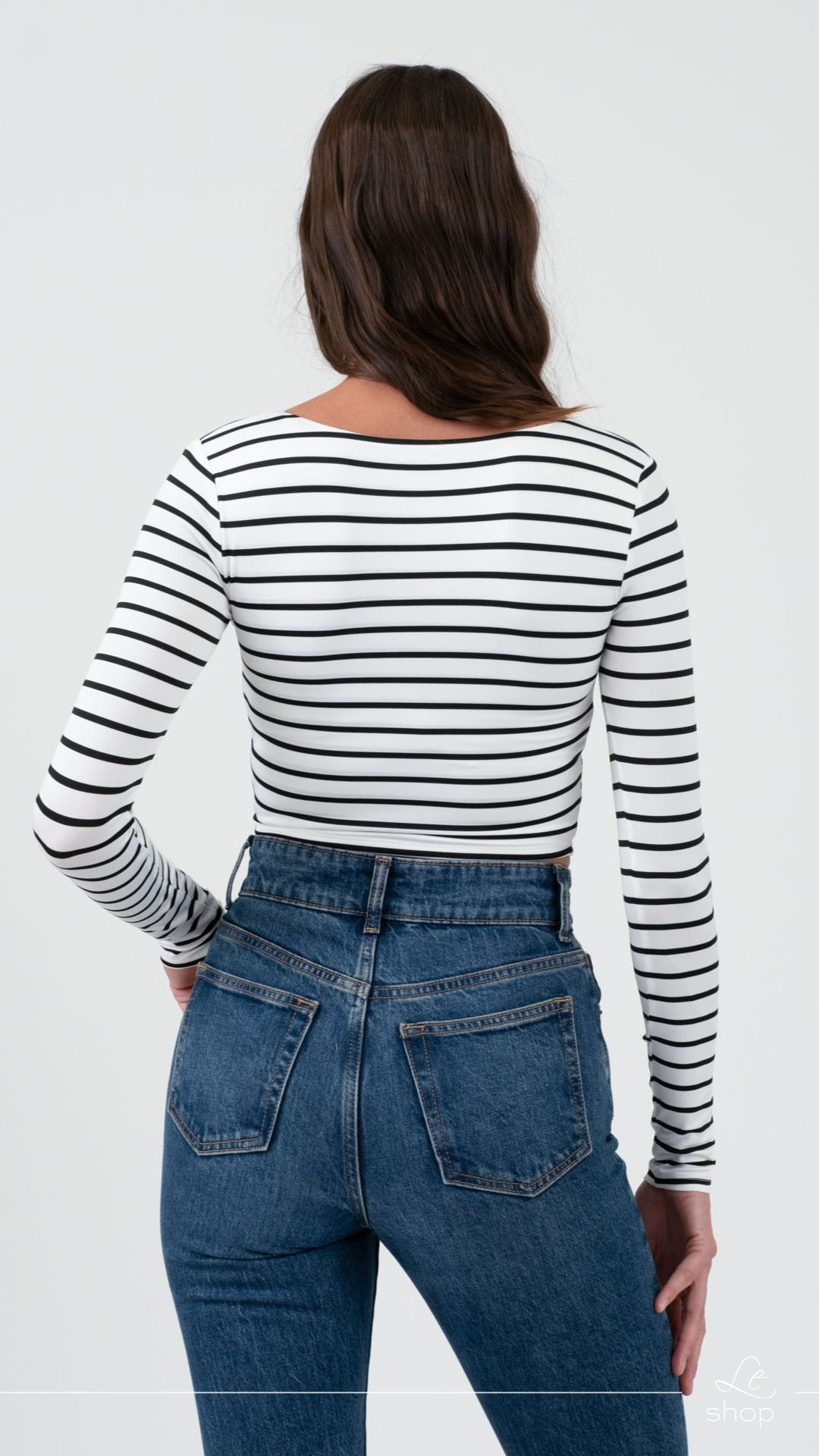 Blusa tirante ancho rayas Blanco Ngr LT10334