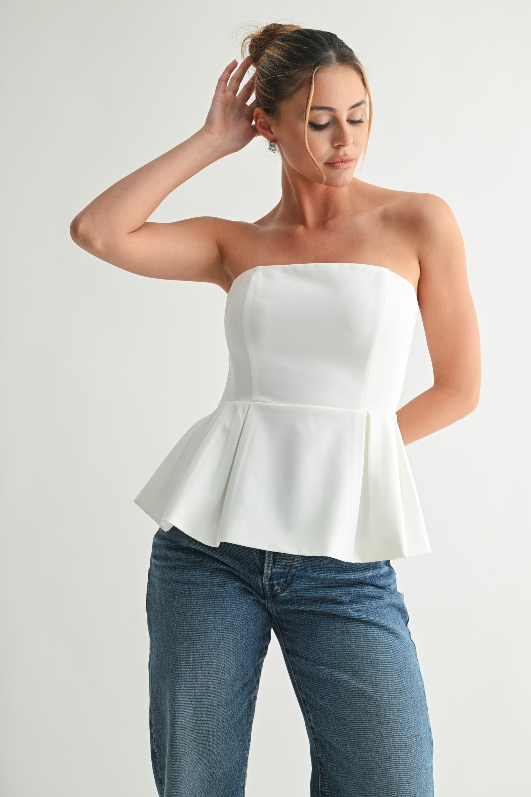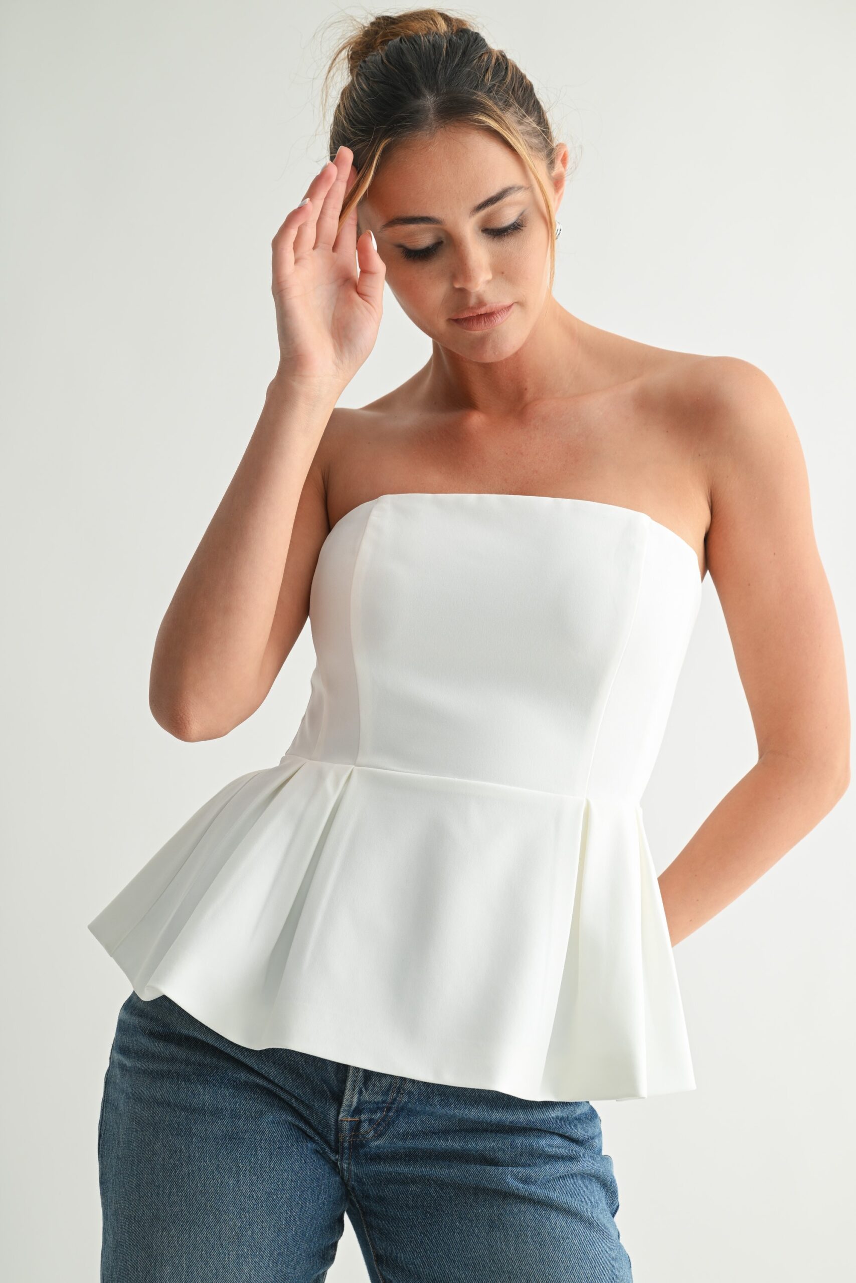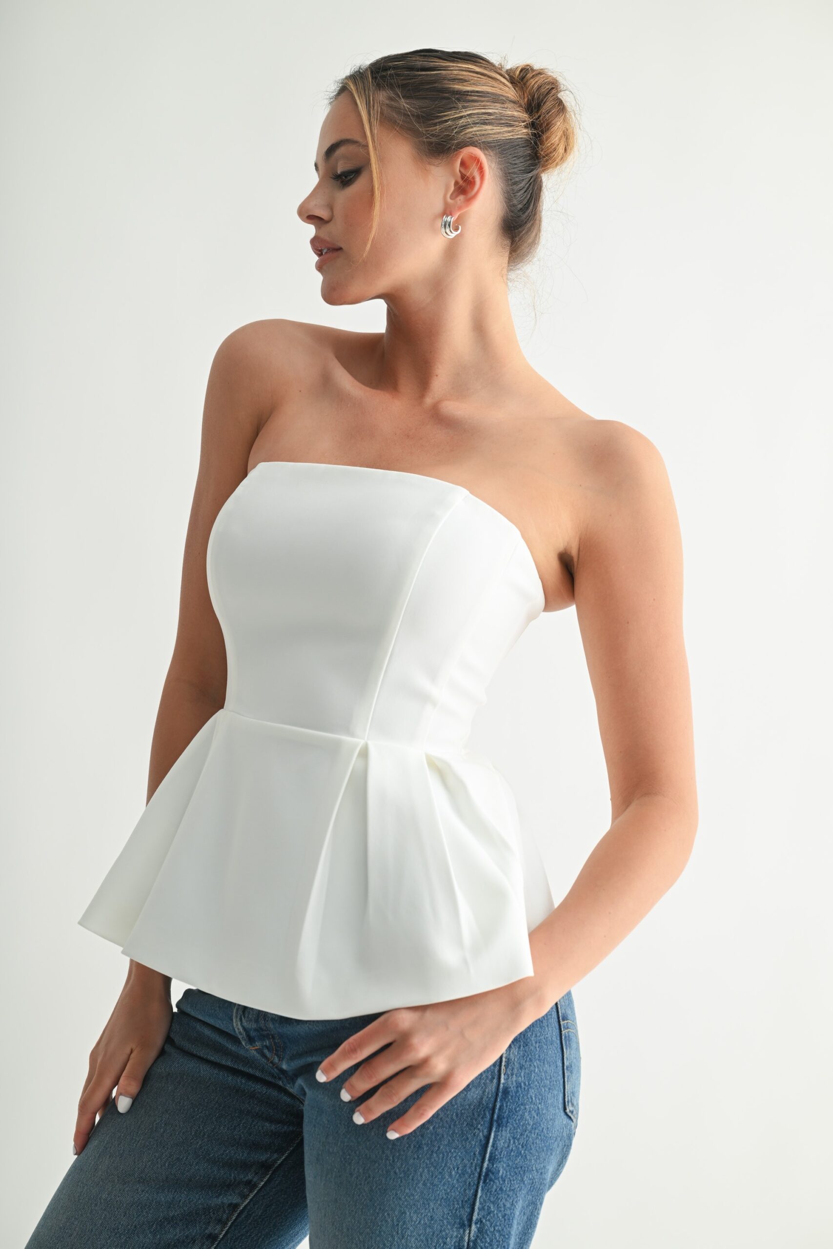 Blusa strapless peplum Marfil LT10863