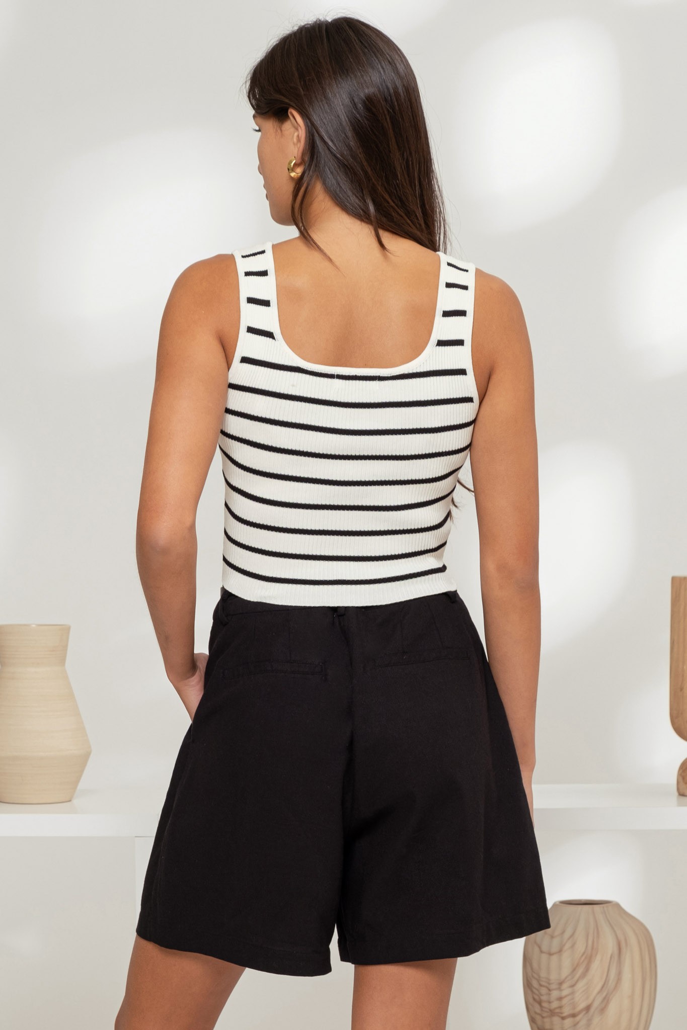 Blusa tirante ancho rayas Marfil Negro LT10767