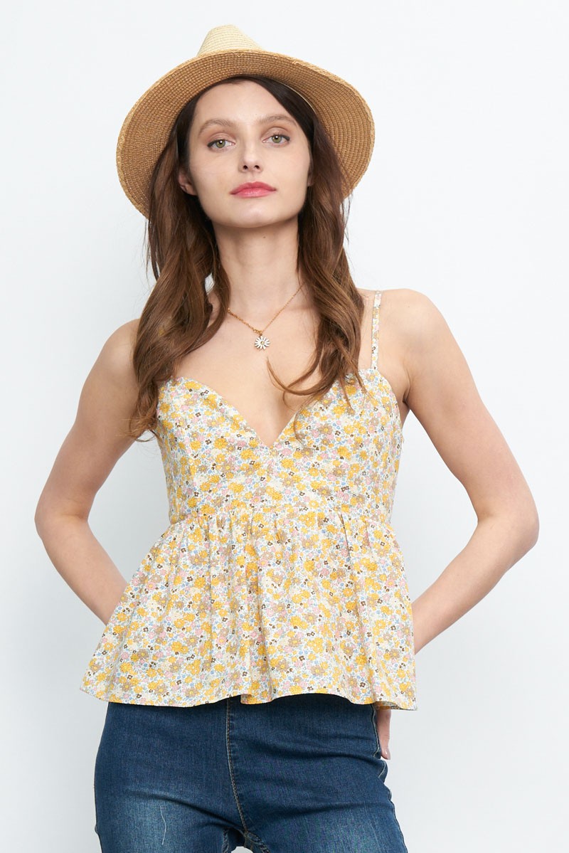 Blusa tirante flores peplum Amarillo LT11069