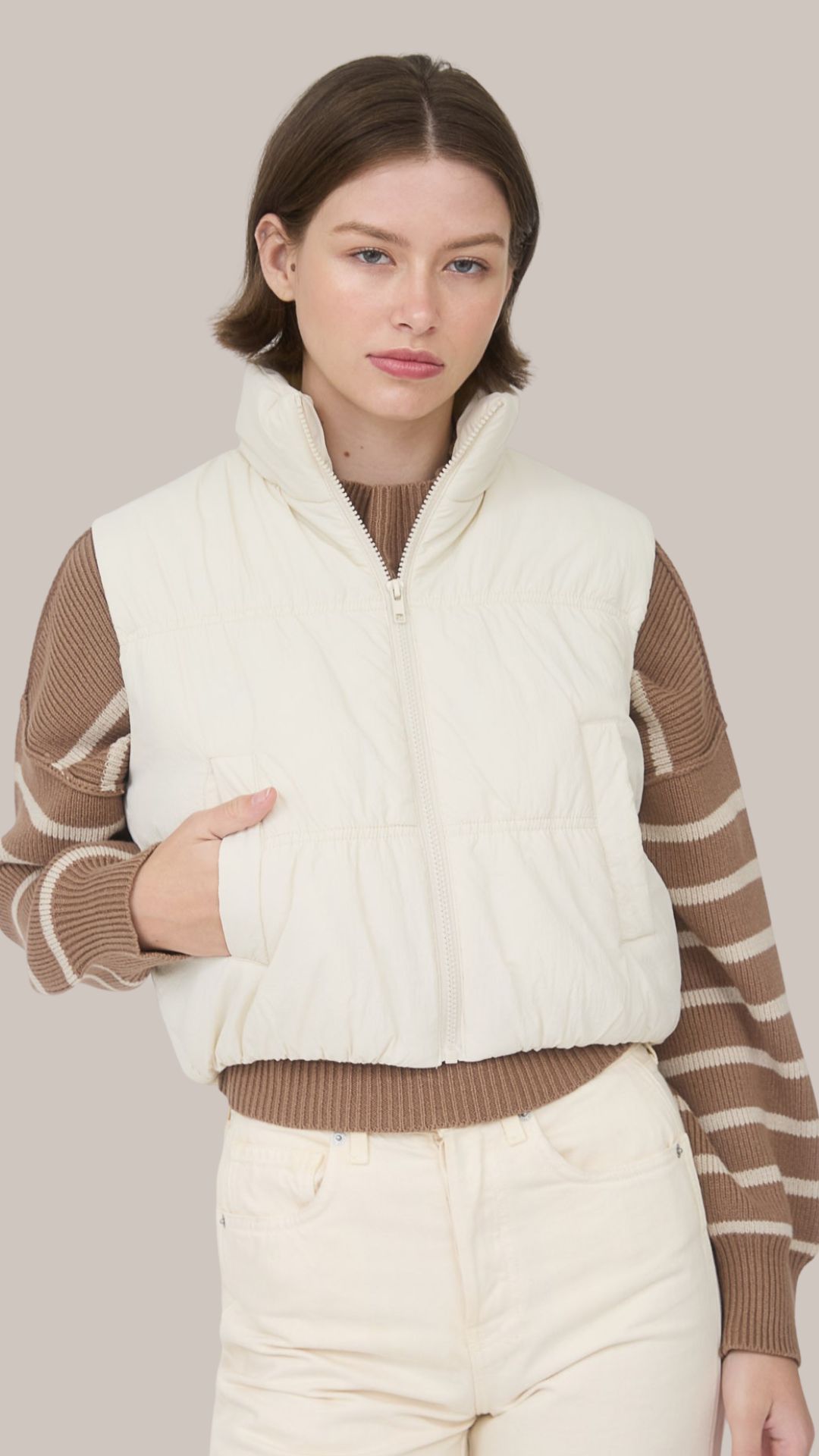 Chaleco corto zipper Beige Claro LT10935