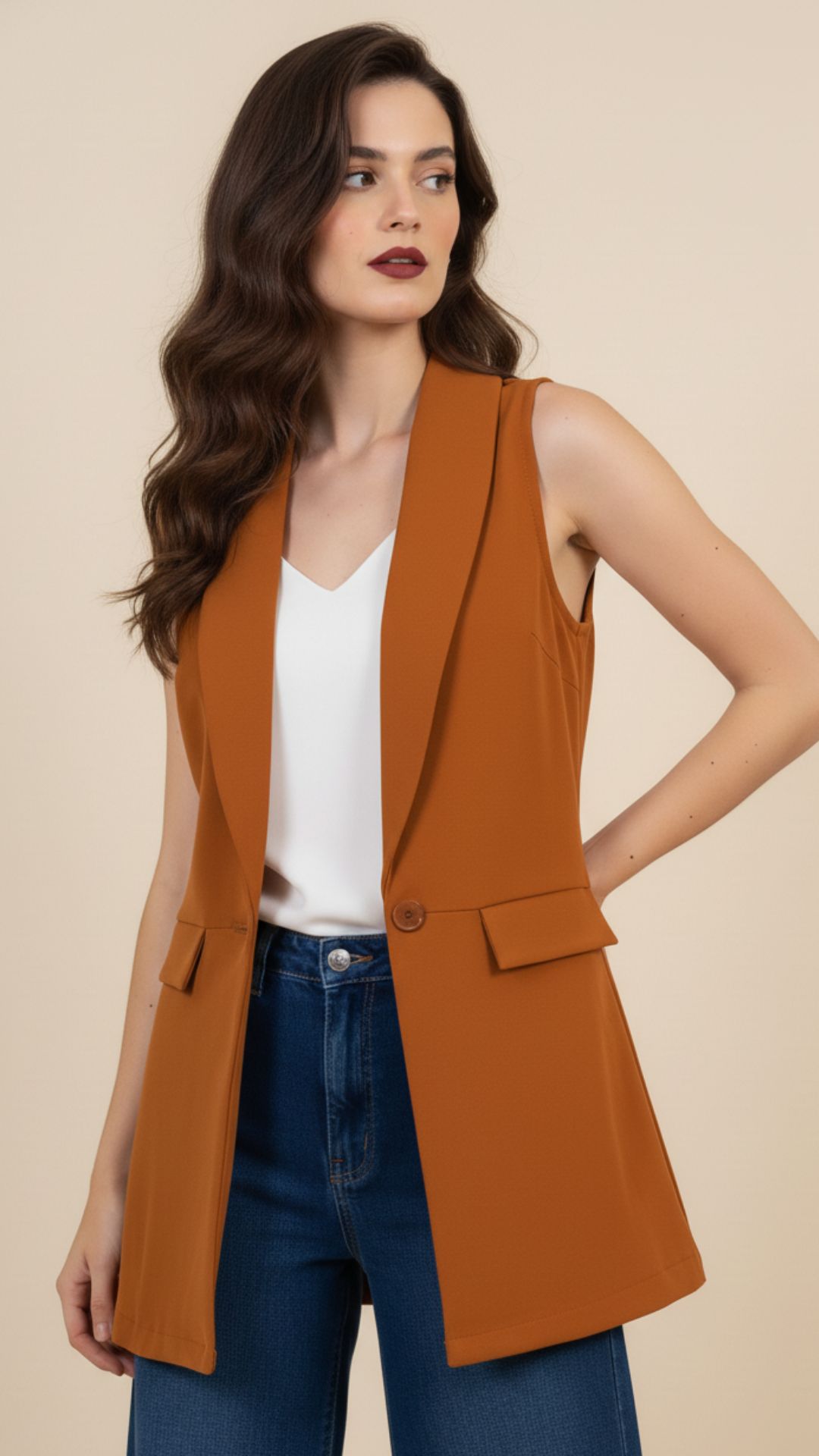 Seleccionar opciones This product has multiple variants. The options may be chosen on the product page Add to wishlistBlusa sin manga hombreras Naranja Quemado LT10268