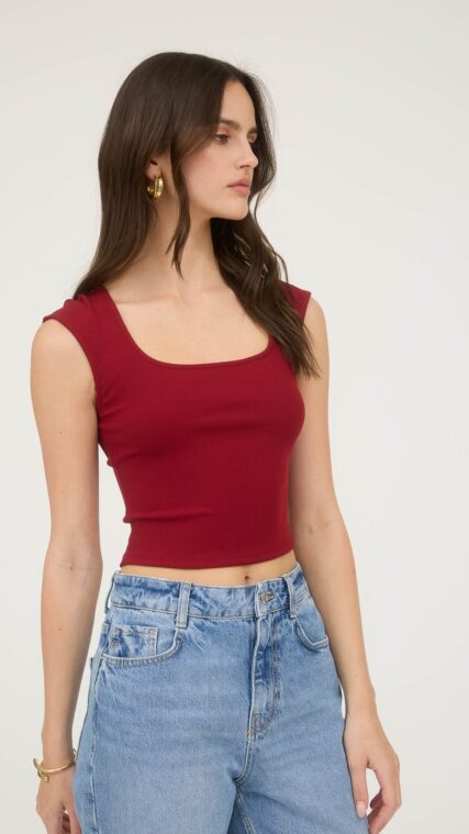 Seleccionar opciones This product has multiple variants. The options may be chosen on the product page Add to wishlistBlusa sin manga acanalada Rojo Vino LT11004
