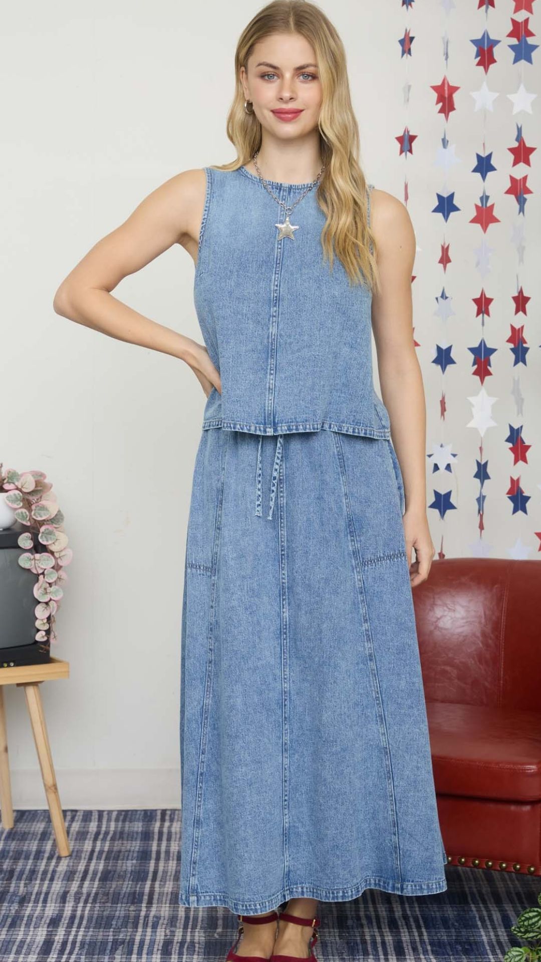 Conjunto Blusa y falda mezclilla Azul Medio LD3996