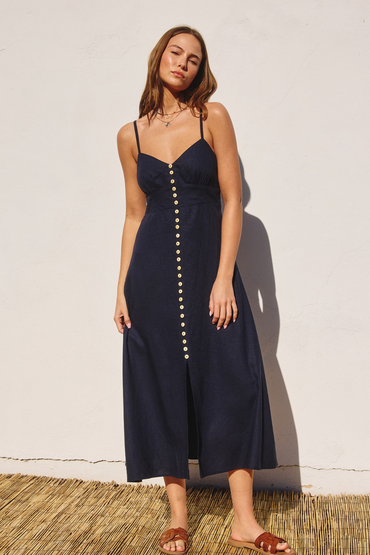 Vestido midi botonoes tirante Azul Marino LD3913