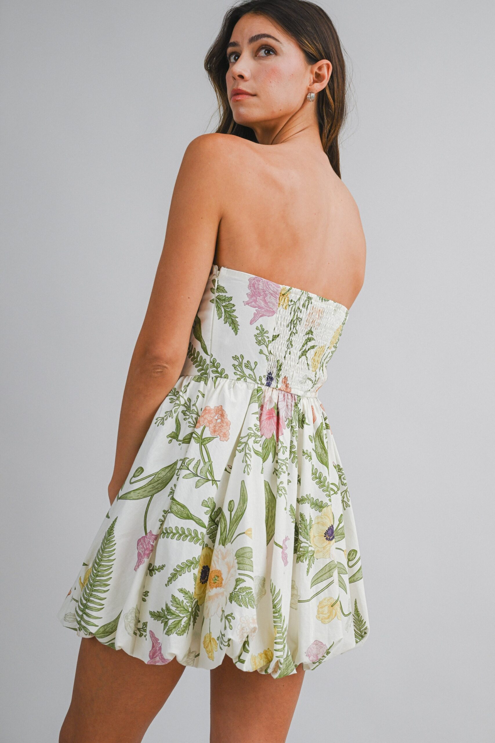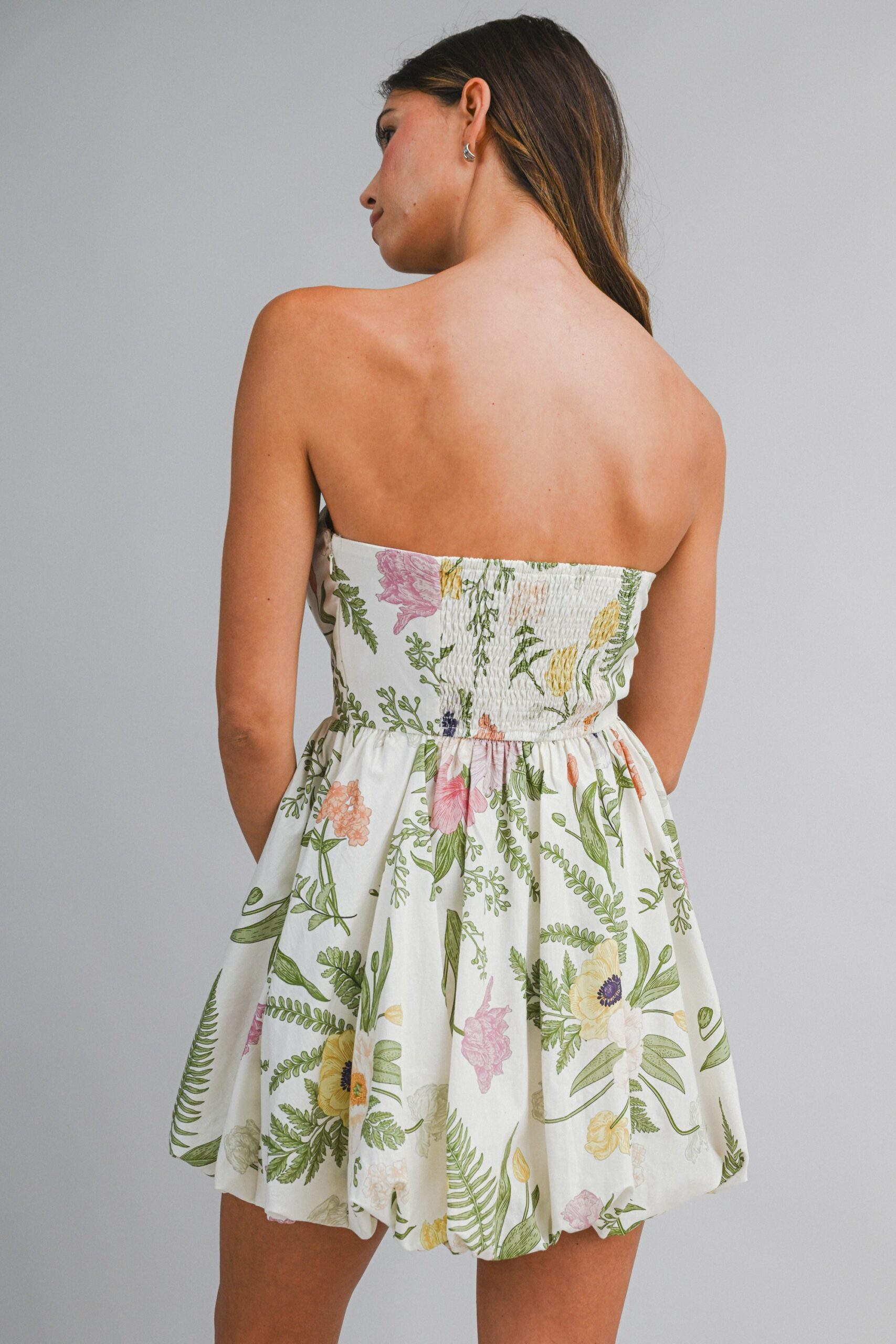 Vestido strapless globo jardin Beige Verde LD3975